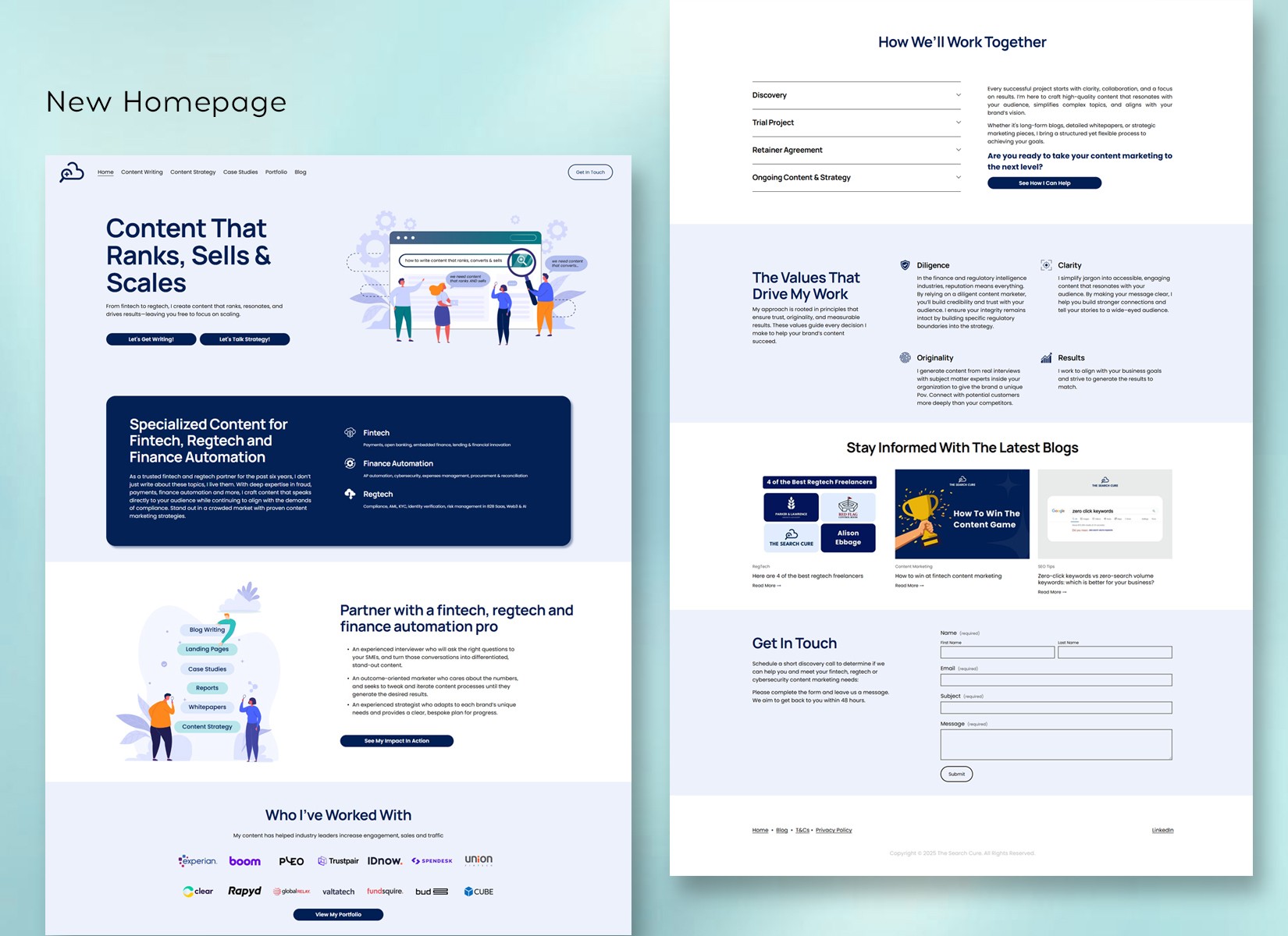 While Shan was busy helping her clients convert and rank, her own website wasn't doing the same for her. With the rebrand, The Search Cure set an impression that was hard to ignore. It pitched her before she could say a single word.